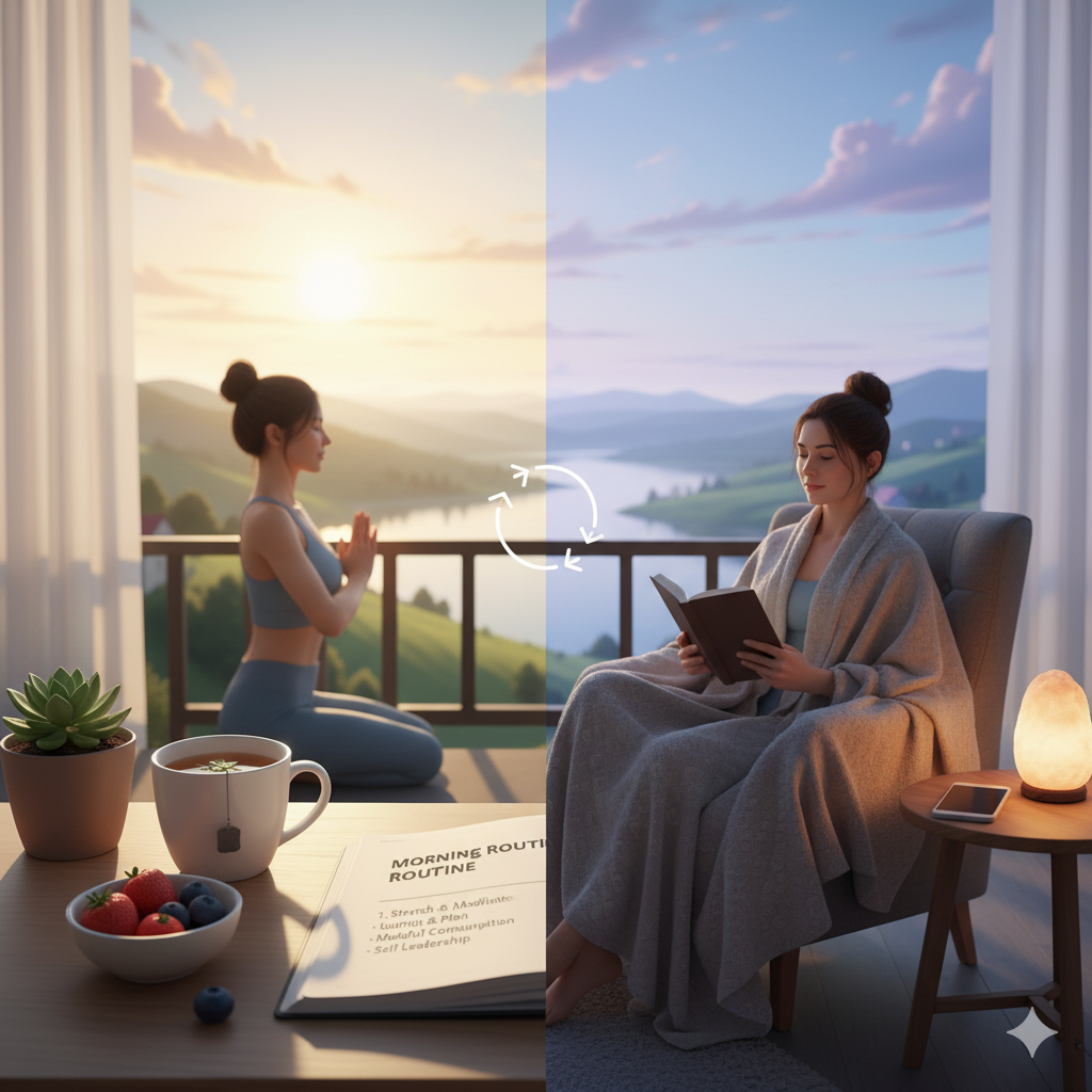 Despite being just as important as the morning routine, the evening one is frequently disregarded. Not only is it important to wind down, but it’s also important to create a calm and seamless transition from the stress of the day to real rest. Avoiding the usual mistake of “doomscrolling” right before bed is necessary to do this. Create an Evening Close instead, which tells your body that the workday is officially finished. An hour before bed, put screens away for a digital sunset. Spend that time reading a physical book, preparing your outfit for the next day, or doing a calming activity like gentle stretching. By creating a relaxing end to your day, you ensure your sleep is restorative, not anxious. When you wake up feeling truly rested, your morning anchor becomes easier, creating a beautiful, self-reinforcing cycle for a better, more fulfilling life.