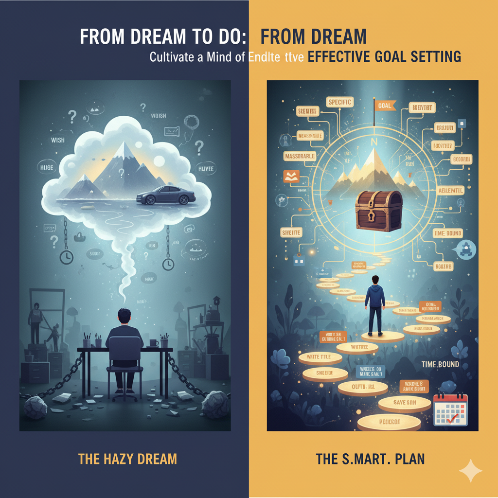 Each of us has deep-seated goals and amazing ideas, such as learning to play an instrument, launching a business, or becoming extremely fit. However, the distance between having a dream and actually putting in the effort to realize it is wide and frequently frustrating. Goals are plans, whereas dreams are wishes. Setting effective goals is the crucial first step in transforming those thrilling but hazy ideas into tangible daily tasks. In order to keep your energy concentrated and ensure that your efforts result in real progress, it is the act of providing your ambition with a defined destination and a trustworthy roadmap.