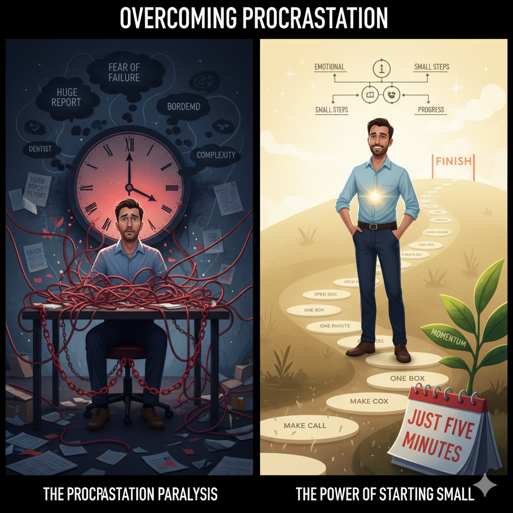 Do you have an impending duty that you keep putting off until the last minute, such as a major report, a difficult house repair, or even just phoning the dentist? Everybody has experienced the agonizing cycle of procrastination, in which putting off a task results in more stress than the activity itself. It’s simple to call ourselves “lazy,” but in reality, procrastination is typically a result of emotional control issues rather than poor time management. Because the activity evokes negative emotions, such as boredom, concern over imperfections, fear of failure, or dread of complexity, we put off starting. Simply said, procrastination is a coping strategy used by our brain to temporarily shield us from unpleasant emotions. The good news is, the shift from endless delay to consistent progress begins not with a new planner, but with a fundamental change in mindset.