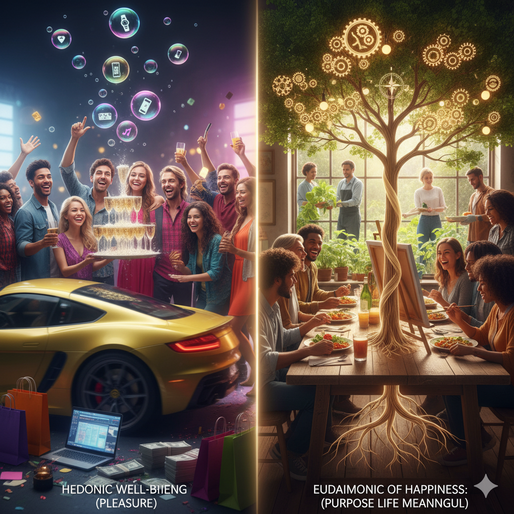 A fulfilling life is frequently divided by psychologists into two essential elements that contribute to general well-being.